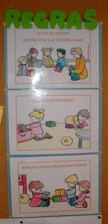 alguns instrumentos de pilotagem, regulação e organização do grupo (tabela de presenças, pictograma das idades, cartaz de regras, pictograma dos aniversários, registo do tempo e as palavrinhas mágicas).
