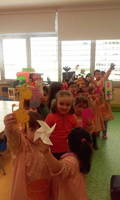 Preparados para ir à Biblioteca entregar os marcadores de livros.